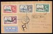 1936 Registered cover franked KGV Silver Jubilee set ½d to 1/- tied by 'GPO Grenada 6 MY 35' FDI cds. To England by air, b/s New York. SG 145-48 cat £42 as loose stamps & 'from x4' on cover, plus premium for set on FDC.