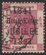1891 Jubilee opt QV 2c carmine, variety 'short J in Jubilee'. VFU. Scott 66c cat US$240. SG 51a cat £225. (P)