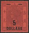 1891 Postal Fiscal QV Surch $5 on $10 purple on red. Superb fresh MLH, perfect centring & rich colour. SG F9 cat £450+. Premium stamp. (P)