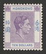 1938-52 KGVI $10 reddish-violet & blue, chalk paper. VF fresh MLH. Scott 166A cat US$100, SG 162a cat £325. (P)