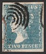 1859 QV Dardenne 2d pale blue. Superb VFU, 4 even margins, concentric circles pmk. Scott 17 cat US$850. SG 44 cat £1100. Scarce classic in nice quality. 2025 Ceremuga photo cert. (P) |