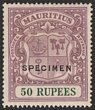 1921-26 Arms 50R dull purple & green, opt SPECIMEN. VF fresh MLH. Scott 200s cat US$400. SG 222s cat £400 (normal cat £1000). (P) |