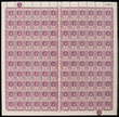 1938-49 KGVI 3c reddish purple & scarlet full sheet showing varieties 'sliced 'S' at right twice [R2-3/2]. VF fresh MUH. SG 253/a cat £406++. (120). |