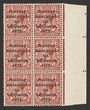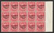 1922-23 Free State opt KGV 1d scarlet, right marginal blk of 15, 2nd row, 2nd stamp from left variety Reversed 'Q' for 'O' in 'ONE'. VF MUH, variety stamp very fresh. SG 53/53e cat £414 as M singles, should be at least double, £824 MUH, plus premium fo multiple. (P)