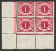 1925 Postage Due 1d carmine, LL cnr marginal blk of 4 wmk 'se' bottom left stamp variety inverted 'Q' for 'O' in postage! Superb fresh MUH. SG D2(var), Hibernian PD2/PD2a cat €255+ as singles, plus premium for positional multiple. (P)