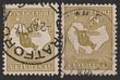 5/- Grey & pale yellow perf OS (2) with varieties 'Short Spencer's Gulf' (37) & 'Elongated Spencer's Gulf' pmks well clear of varieties. FU with bold cancels. SG O50 cat £180+. ACSC 44D6(D)O cat $825. (2).