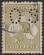 3d Olive-green Die I, variety 'deformed coast in bight' State II, perf OS. VFU, W/C. SG O45(var). ACSC 13Kb(2)ha cat $250 for variety & double $500 for perf OS. (P)