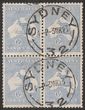 6d Ultramarine Die IIb blk of 4. F-VFU W/C 'Sydney 3 MR 23' cds. SG 38d cat £96=A$192+++ ACSC 20A cat $100+++. Scarce multiple. Ex Sandy. (4).