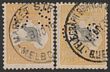 3d Olive Green Die I & 6d ultramarine Die I wmk inverted prs. F-VFU. SG 37cw & 38cw cat £160=A$320. ACSC cat $900. Scarce multiples. Ex Sandy (4).
