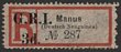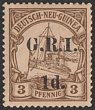 1915 'G.R.I. 3d' opt Manus (Deutsch Neuguinea) sans serif Registration Label No 287. VF fresh MLH. Scott 48 cat US$325. SG 39 cat £325. 2003 Sismondo photo-cert. (P) |