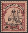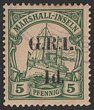 1914 'G.R.I. 5d' 5mm opt Marshalls Yacht 50pf black & purple/buff, variety 'd omitted'. VF fresh MLH. Scott 37a cat US$2250. SG 57f cat £2250. Very rare variety. 2004 Gibbs photo-cert. (P) |