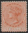 1876-79 QV 1/-orange, wmk Crown CC, perf 14. VF UN, nice colour. Scott 12 cat US$950. SG 16 cat £1300. Rare unused. (P) |