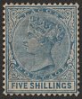 1884-86 QV 5/- blue, wmk Crown CA. VFM, sl disturbed gum. Scott 35 cat US$750. SG 28 cat £750. Sperati forgery & with his pencil signature. (P) |