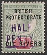 1893 Old Calabar Provisional 'HALF PENNY' on QV 2d, opt type 3 in violet. Superb fresh MLH. Scott 20 cat US$550. SG 9 cat £600. Only 120 printed & most used. 2003 Ceremuga photo-cert. (P) |