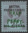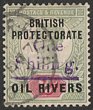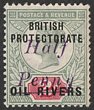 1893 Old Calabar Provisional 'HALF PENNY' on QV 2½d, opt type 4 in green. VFU, Old Calabar 12.4.94 cds. Scott 25 cat US$275. SG 11 cat £275. Only 180 printed. 2004 BPA photo-cert. (P) |