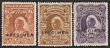 1897-98 QV set 6d to 10/-, wmk crown CA, opt SPECIMEN. VF fresh MLH. SG 71s, 73s, & 74s cat £275. (3). (P) |
