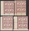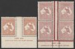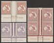 2/- Maroon & Reddish maroon by Authority imprint - LL cnr blk of 4 (x2), gutter blk of 4 with both 14mm & 25mm imprints. F-VF MUH. SG 212(var). ACSC 41z,zb, zd cat $500. (16). |