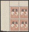 6d Chestnut opt OS top left marginal blk of 4. F-VF fresh MUH. SG O27 cat £220 should be at least double, MUH £440. ACSC 23(OS)A cat $500. 1999 Ceremuga AIEP photo cert. (4). (P) |