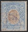 1905 'JUDICIAL FEE' seriffed opt KEVII 10R black & blue, wmk crown CC. F-VF F/C, horiz crease, violet h/s cancel. Bft 36 cat £75. Rare. (P)