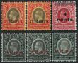 1912-21 KGV SPECIMEN selection inc 1912-21 25c on white back plus on lemon back. 1912-21 75c on white back, on olive back & on green. 1919 Surch '4 Cents' on 6c. VF M/MLH. SG 50as, 50bs, 52s, 52as, 52bs, 64s est cat £221. (6) (P)