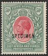 1912-21 KGV 50R carmine & green, wmk mult crown opt SPECIMEN. VF fresh MLH. SG 61s cat £300 (normal cat £900). (P)