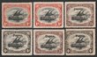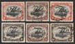 1907-15 'Stamp Duty' opts Lakatoi group inc small Papua - 6d black & myrtle green (SG 53), ½d black & deep green SG 66a scarce shade, 1d black & carmine SG 67 Large Papua 1d black & carmine SG 76 1d rose pink SG 85 (3), 1d grey black & red (SG 946) with 'curved stamp duty' opt. GU-FU. SG(var) cat £100 as normal stamps, should be at least double for scarce opt £200 = $400. Stamp duty opt are scarce and are interesting segment of Lakatoi study. (8). (P) |