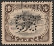 1907-10 Lakatoi Small Papua 4d black & sepia, wmk upright, perf 12½, perf OS INVERTED. VFU with cnr cds. SG O12(var). 2025 Ceremuga AIEP photo-cert. (P) |