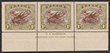 1930 Lakatoi Airmail Plane 1/- sepia & olive opt in deep carmine-lake (instead of normal carmine) Harrison imprint strip of 3 with 'tail flaw' on 3rd stamp. Very rare imprint with Croker suggesting only 10 sheets of deep carmine-lake opt printed. VF MUH. SG 117(var). 2025 Ceremuga AIEP photo-cert. (3) (P) |