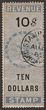 1874 QV Revenue $10 blue & black. VF F/C, Singapore AU 82 cds. Bft 18. (P)