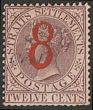 1884 Large red '8' opt QV 8c/12c dull purple. VF fresh M. Scott 65 cat US$575, SG 80 cat £650. (P)