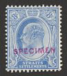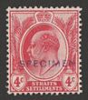 1906-12 KEVII 4c red wmk mult crown, h/s SPECIMEN sans-serif violet opt type D9 (15x2mm). VF UN. SG 154s(var). From DLR archives & probably unique! (P)