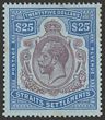 1921-33 KGV $25 purple & blue on blue, wmk script. Superb fresh M, nice original gum & excellent colours. Scott 202 cat US$1450, SG 240b cat £1500. Rare genuine mint & certificate can be obtained on request. (P)