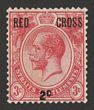 1917 'RED CROSS 2c' on KGV 3c scarlet, variety 'no stop'. VF fresh MLH. Scott B1a cat US$575. SG 216a cat £475. (P)