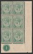 1921-33 KGV 2c green, LR cnr marginal blk of 6 plate no 1, wmk script. VF 2M/4MUH, small hole in LR stamp. SG 219.