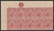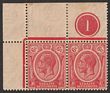 1921-33 KGV 6c scarlet, UL cnr marginal horiz pr with plate no 1, wmk Mult Script. Stamps VF MUH. Scott 189. SG 229 cat £6 for M singles, should be at least double £12 MUH plus premium for plate pr.