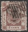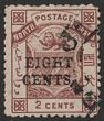1883 'EIGHT CENTS' opt Arms 2c red-brown VFU. Scott 4 cat US$210. SG 3 cat £250. Scarce genuine. (P)