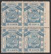 1886 Arms 10c blue, 'North Borneo' right marginal blk of 4, pos 29-30, 39-40. Superb 2M/2MUH, w/c. Scott 13 cat US$220 for M. SG 13 cat £260 for M singles, MUH should be at least double £390 plus premium for scarcer multiple. (P)