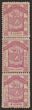 1886-87 Arms 4c pink inscribed 'POSTAGE' vert strip of 3 (rejoined), error centre stamp 'ONE CENT' instead of '4 Cents'. VFM. SG 26d cat £350. (P)