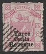 1886 'Three Cents Revenue' opt Arms 4c pink Postal Fiscal, 'raised stop after cents' rough perf 12. Postally VFU, barred oval pmk. SG F1a cat £180. (P)