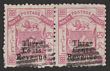 1886 'Three Cents Revenue' opt Arms 4c pink, Postal Fiscal, horiz pr. Postally F-VF U, barred oval pmk. SG F1 cat £380, plus premium for rare multiple. (P)