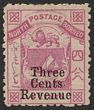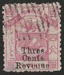 1886 'Three Cents Revenue' opt Arms 4c pink Postal Fiscal, rough perf 12 'raised stop after cents' VF fresh M, w/c. SG F1a cat £120. (P)
