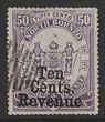 1886 'Ten Cents Revenue' opt Arms 50c violet Postal Fiscal. Postally VFU, oval barred pmk. SG F3 cat £250. (P)
