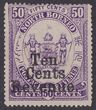 1886 'Ten Cents Revenue' opt Arms 50c violet, postal fiscal, variety 'no stop after Cents & stop after Revenue'. F-VF fresh M. SG F3b cat £600. (P)
