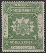 1888-92 Arms $2 dull green, inscribed 'BRITISH NORTH BORNEO' with 'BRITISH' 10½mm long. VF fresh M. Scott 47 cat US$250. SG 48 cat £250. (P)
