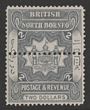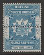 1888-92 Arms $2 blue, inscribed British North Borneo, British 10½mm long, colour trial with horiz line of perfs through centre. VF fresh M. SG 48(p) cat £225 as normal. (P)