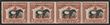 1918 Red Cross 'FOUR CENTS' opt Malayan Tapir 1c black & chocolate, horiz strip of 4, error IMPERF BETWEEN on horiz pr in centre of strip, se-tenant with normal outer stamps at sides. Superb fresh MUH, never hinged original gum which is somewhat dull etc from interleaving. SG 235a cat £3000 for M pair, should be at least double, £6000 MUH, plus premium for strip with normals. Extremely rare error as only 1 column of 10 was recorded. 2023 Ceremuga photo-cert. (P)