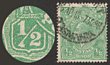 ½d Bluish green with variety 'crack through P of Postage' (2R35). FU. ACSC 65F(2)o cat $1900. Rare variety. (P) |