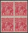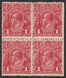 1d Scarlet-red (G17) blk of 4, lower stamps variety 'dot before right 1' & 'thinned left frame'. VF fresh MLH, LL stamp 2 pin holes. SG 21c(var). ACSC 71G(3)na cat $400+. Scarce this shade (4) (P) |