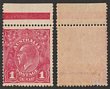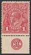 1d Carmine (G63) rough paper top marginal single, only showing line watermark only. F-VF MLH, tiny thin at bottom. SG 47(var). ACSC 72Cac cat $1250. (P) |