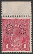 1d Dull Red perf OS (G16) variety 7/60 RA joined with double perforation at base with Melbourne Mar 16 cds. Double perforation stamps are quite scarce with major varieties. FU. SG O17(var). 71E(4)ba/bb cat $250 with $100+ variety, worth at least double, $500 with variety. Ex Sandy. (P) |